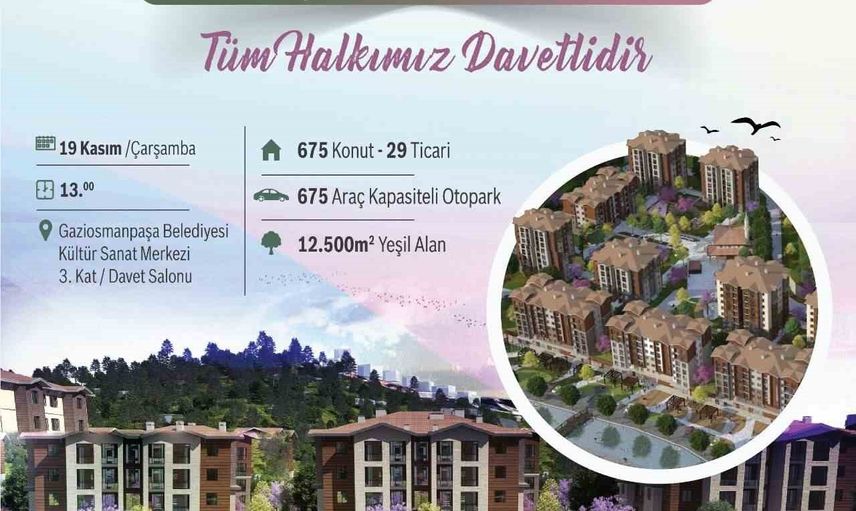 ÇEVRE, ŞEHİRCİLİK VE İKLİM DEĞİŞİKLİĞİ BAKANLIĞI TOPLU KONUT İDARESİ BAŞKANLIĞI (TOKİ) VE GAZİOSMANPAŞA BELEDİYESİ İŞ BİRLİĞİYLE HAYATA GEÇİRİLEN İSTANBUL VADİ EVLERİ 1. KISIM 2. ETAP KENTSEL DÖNÜŞÜM PROJESİ'NİN KURA ÇEKİMLERİ 19 KASIM ÇARŞAMBA GÜNÜ GERÇEKLEŞTİRİLECEK.