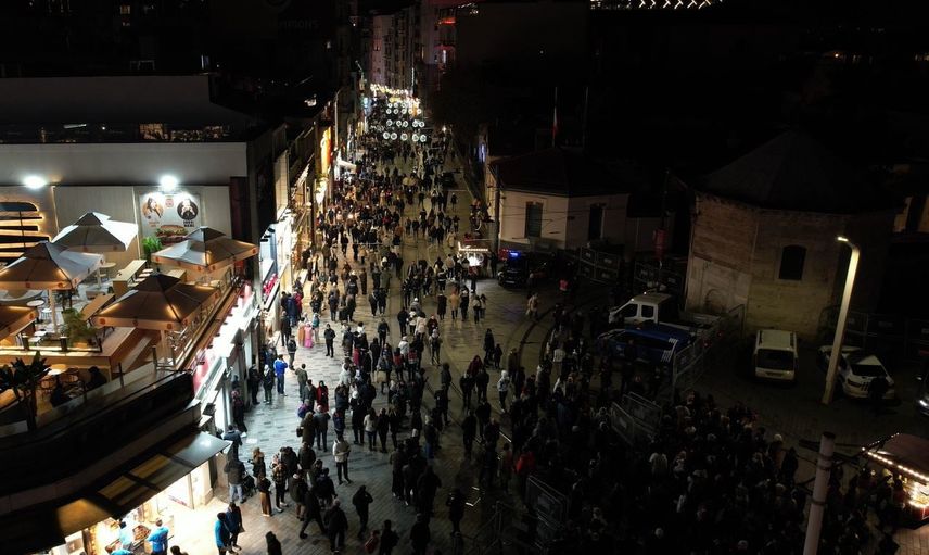 Yeni yıla dışarıda girmeye hazırlanan vatandaşların oluşturduğu yoğunluk, Beyoğlu İstiklal Caddesi ve Taksim Meydanı çevresinde dikkat çekti. Akşam saatlerinde bölgedeki çok sayıda kişi, çeşitli mekanlarda ve caddede vakit geçirirken, kalabalığın havadan görüntüleri kayda alındı.