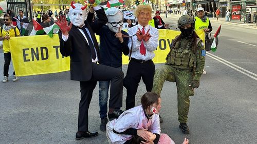 İsveç'te Filistin'deki Gıda Kıtlığına Dikkat Çeken Protesto