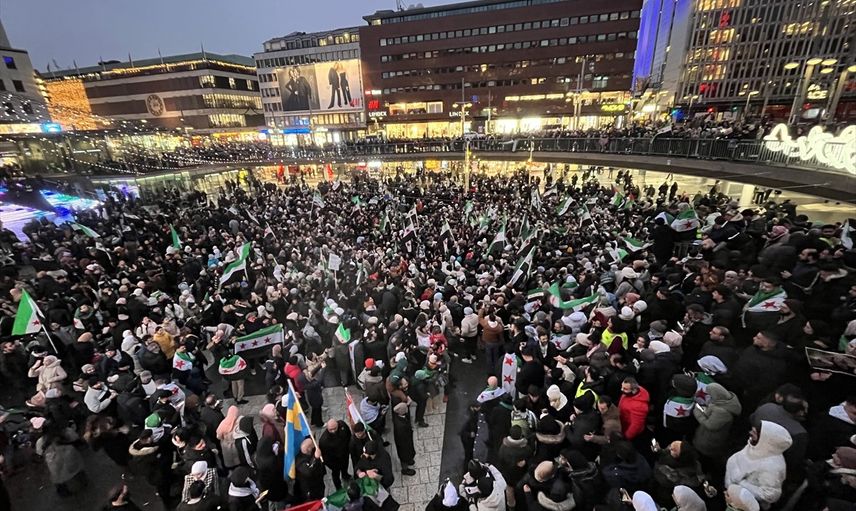 Stockholm'un Sergels Torg Meydanı'nda toplanan binlerce gösterici, Baas rejiminin çöküşünü sevinçle karşıladı. Grup adına yapılan açıklamada, Suriye'de çöken Baas rejiminin devrik lideri Beşşar Esed'in 14 yıllık iktidarları boyunca gerçekleştirdiği zalimlikler ve katliamlar hatırlatıldı.