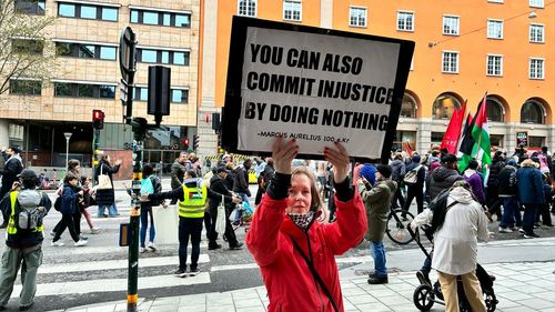 Stockholm'de yüzlerce kişi, İsrail'in Gazze'ye yönelik saldırılarını protesto ederek Filistin için destek çağrısında bulundu.
