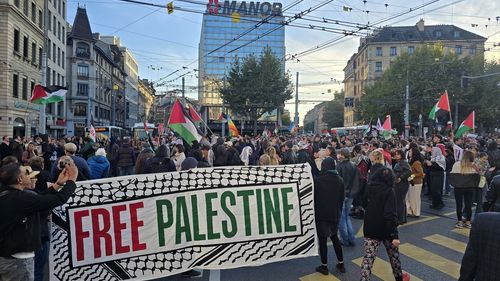 Cenevre başta olmak üzere İsviçre'nin birçok kantonunda binlerce kişi, İsrail'in Küresel Sumud Filosu'na yaptığı saldırıları protesto ederek Gazze'ye yardımın engelsiz ulaşmasını talep etti.