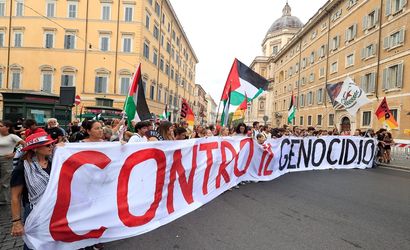Protestocular, üzerinde "Gazze'de soykırımı durdurun", "İsrail'e silah göndermeyi durdurun", "Gazze'nin bombalanmasını durdurun", "İsrail'le anlaşmaları durdurun" yazılı dövizler taşıdı; bazı göstericiler Filistin bayrağı renklerinde meşaleler yaktı. Roma'daki grup daha sonra Porta Maggiore semtine doğru yürüyüşe geçti.
