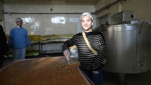 İtalya'nın Genova kentinden gelen 12 Erasmus öğrencisi, Gümüşhane'de pestil-köme atölyesinde üretim aşamalarını görüp kendi ürünlerini üretti.