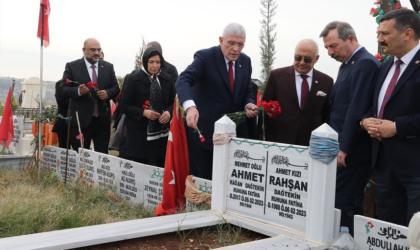 Dervişoğlu, partisinin Adıyaman il başkanlığını ziyaret ettikten sonra, 6 Şubat 2023'teki depremlerde hayatını kaybedenlerin kabirlerini bulunan Bahçecik Mahallesi'ndeki Yeni Mezarlığı'na gitti. Burada mezarlara karanfil bırakıp dua eden Dervişoğlu, Altınşehir Mahallesi'ndeki K1 konteyner kentte yaşayan afetzedelerle bir araya geldi.