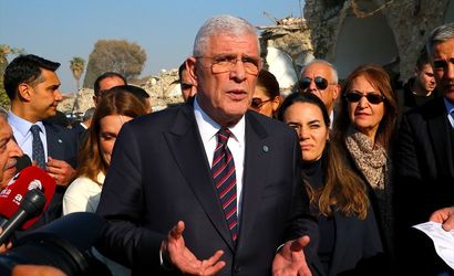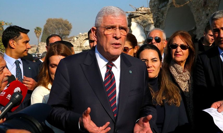 İYİ Parti Genel Başkanı Müsavat Dervişoğlu, Hatay'da beraberindeki partililerle Antakya Saray Caddesi'nde, gazetecilere açıklamada bulundu.