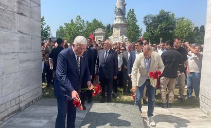 İYİ Parti Genel Başkanı Müsavat Dervişoğlu (sol 3), Osmanlı sadrazamlarından Talat Paşa'nın Şişli'deki kabrini ziyaret etti.