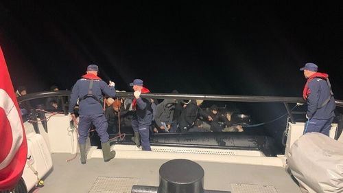 İzmir açıklarında motor arızası yaşayan lastik botlardaki 68 düzensiz göçmen kurtarıldı