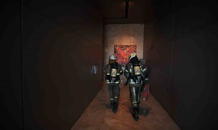 Senaryoya göre binanın 11. katındaki temizlik odasında, sigaranın söndürülmeden atılması sonucu çıkan yangın kısa sürede büyüdü. Çalışanlar 112 Acil Çağrı Merkezi'ne haber verdi. Olay yerine hızla ulaşan itfaiye ekipleri, mahsur kalan bir personeli güvenli şekilde kurtarırken, yangını da kontrol altına aldı. Dumandan etkilenen kişi AKS ekiplerince ilk müdahaleyi aldı.