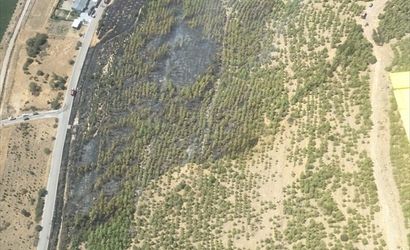 İzmir'in Bergama ilçesindeki Kaşıkçı Mahallesi'nde çıkan orman yangını, havadan ve karadan müdahaleyle kontrol altına alındı.