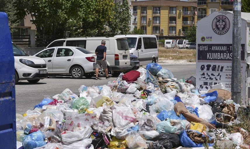 İzmir'in Buca Belediyesinde işçilerin maaşlarını düzensiz aldıkları gerekçesiyle 8 gün önce başlattığı iş bırakma eylemi sürüyor. İşçilerin eylemi nedeniyle temizlik hizmeti aksıyor. İlçenin çeşitli noktalarında çöp yığınları oluştu. Çöpler nedeniyle çevreye kötü koku da yayıldı.
