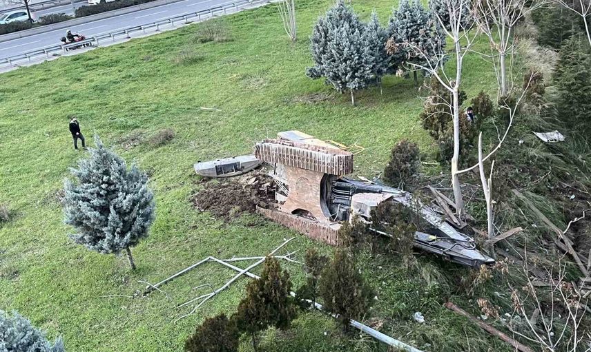 İddiaya göre seyir halindeyken freni boşalan çekici, önündeki otomobile çarptı. Çarpmanın etkisiyle savrulan otomobil bariyerleri aşarak viyadükte asılı kalırken, çekici ise metrelerce yükseklikten aşağı düştü.