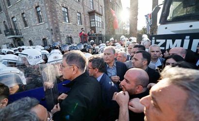 Yurt dışı seyahatini yarıda bırakarak İzmir'e dönen İzmir Büyükşehir Belediye Başkanı Cemil Tugay, tahliyeye tepki göstererek hukuki süreçlerin işletilmediğini ve işlem öncesinde yasal tebligat veya süre verilmediğini öne sürdü. Tugay, tahliye girişimini 'kamu idaresinin etik kurallarının yerle bir edilmesi' şeklinde değerlendirdi ve şu ifadeleri kullandı: 'Tahliye için yasal bir tebligat veya süre verilmeden, kamu idaresinin etik kuralları yerle bir edilerek gayrihukuki yöntemlerle elimizden bu bina alınmaya çalışılıyor.'