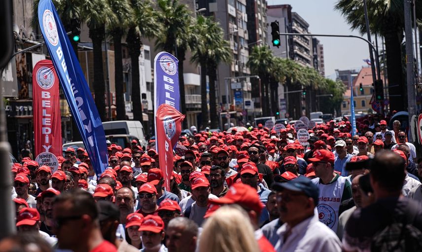 İzmir Büyükşehir Belediyesinde işten çıkarılan işçiler, Türkiye Belediyeler ve Genel Hizmetler İşçileri Sendikası (Belediye-İş) öncülüğünde yürüyüş eylemi gerçekleştirdi.