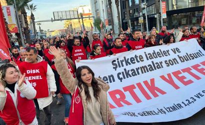 İZMİR’DE BELEDİYE ŞİRKETLERİNDE ÇALIŞAN İŞÇİLER, ÖDEME KRİZİ VE İŞTEN ÇIKARMALARA KARŞI YÜRÜYÜŞLERİNİ ÜÇÜNCÜ GÜNDE DE SÜRDÜRDÜ.