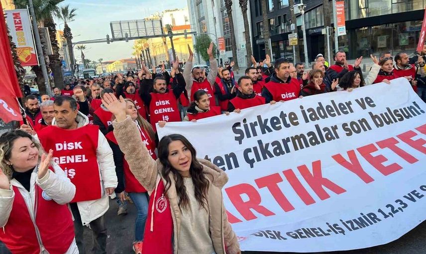 İzmir’de belediye şirketlerinde çalışan işçiler, ödeme krizi ve işten çıkarmalara karşı düzenledikleri eylemleri üçüncü günde de sürdürdü. Konak Pier önünden Kültürpark Basmane Kapısı’na yürüyen işçiler, basın açıklaması yaparak çözüm için bir an önce masanın kurulmasını talep etti.