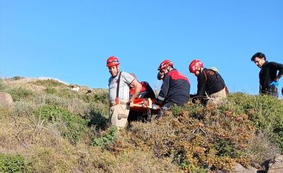 İzmir'in Çeşme ilçesinde sarp kayalıkta avcılık yaparken düşen ve ayağından yaralanan kişiyi itfaiye ekipleri kurtardı.