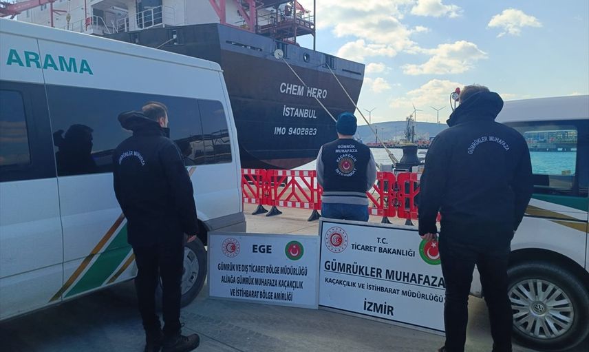 İzmir'in Aliağa ilçesinde, İzmir Gümrük Muhafaza ve İstihbarat Müdürlüğü Gemi Arama ekibi, bir tankerde gerçekleştirdiği incelemede 20 ton 600 kilogram kaçak akaryakıt ele geçirdi.