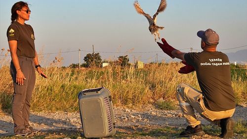 İzmir'de, 40 gün önce annesiz kalınca İzmir Doğal Yaşam Parkı'na getirilerek özenle bakılan 6 peçeli baykuş, doğaya bırakıldı.İzmir Büyükşehir...