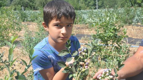 İzmir'deki Bozdağ Mahallesi'nde 3 yıl önce dikilen maviyemişin ilk hasadı yapıldı ve 45 kilogram ürün elde edildi.