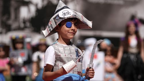 İzmir'de Sıfır Atık Şenliği kapsamında, öğrenciler atık malzemelerden tasarladıkları kıyafetlerle defile düzenledi.