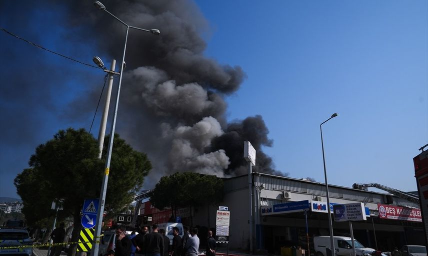 İzmir'in Bornova ilçesinde, Evka-3 Mahallesi 4. Sanayi Sitesi'nde bulunan bir oto lastik satış ve bakım iş yerinde henüz belirlenemeyen bir nedenle yangın çıktığı bildirildi.