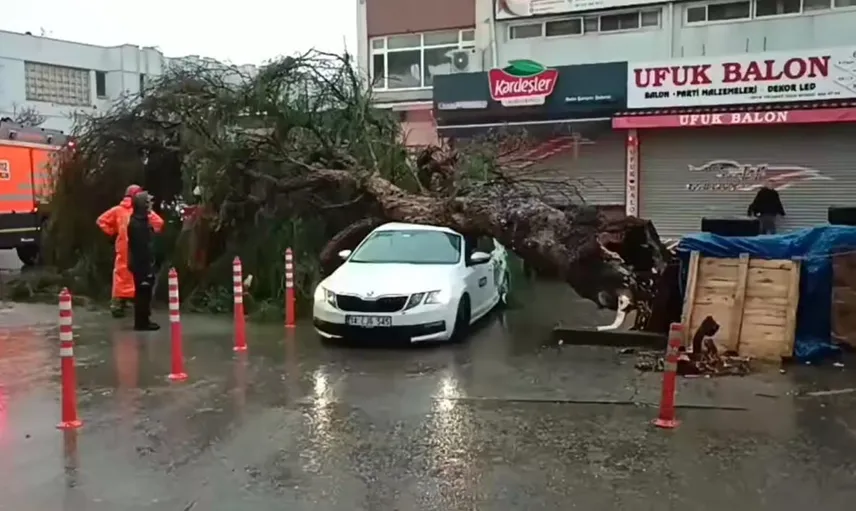 İZMİR’DE AKŞAM SAATLERİNDE ANİDEN BASTIRAN KUVVETLİ SAĞANAK YAĞIŞ VE ŞİDDETLİ FIRTINA, KENTİ ADETA TESLİM ALDI. İŞ ÇIKIŞ SAATİNE DENK GELEN OLUMSUZ HAVA KOŞULLARI NEDENİYLE TRAFİK DURMA NOKTASINA GELİRKEN, DEVRİLEN AĞAÇLAR VE SU BASKINLARI HAYATI FELÇ ETTİ.