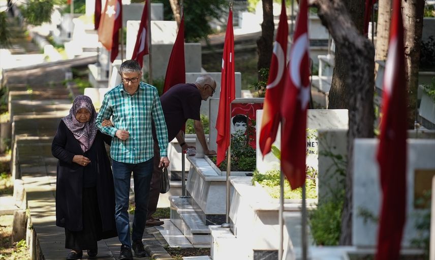 İzmir'de şehit yakınları, Kurban Bayramı'nın birinci gününde Kadifekale Hava Şehitliği'ni ziyaret etti. Bayram dolayısıyla şehitlikte bir araya gelen aileler, evlatlarının mezarları başında dua etti ve Kur'an-ı Kerim okudu.