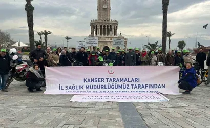 İzmir Demokrasi Üniversitesi Tıp Fakültesi ile İzmir İl Sağlık Müdürlüğü iş birliği kapsamında, "Serviks (Rahim Ağzı) Kanseri Farkındalık Ayı" etkinlikleri çerçevesinde bir bisiklet turu gerçekleştirildi. Katılımcılar, etkinlik simgesi olan yeşil şapkaları takarak Konak Meydanı'ndan Alsancak Gündoğdu Meydanı'na kadar pedal çevirdi ve erken teşhisin önemine dikkat çekti.