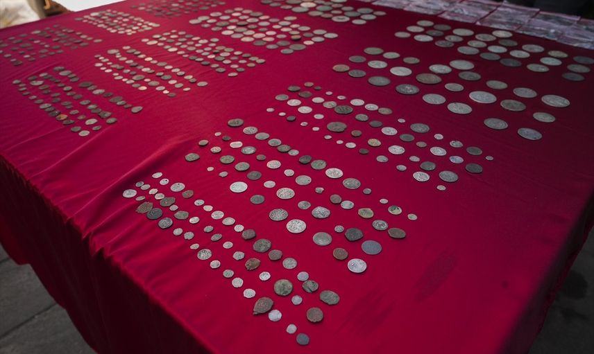 İzmir'de düzenlenen tarihi eser kaçakçılığı operasyonunda, yurt dışına çıkarmak amacıyla evde gizlenen 2 bin 305 gümüş ve bronz sikke ele geçirildi. Operasyonda ele geçirilen eserler, İl Emniyet Müdürlüğü Yeşilyurt Hizmet Binası önünde sergilendi.