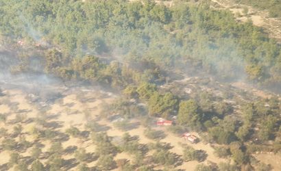 İzmir'in Kınık ilçesinde tarım arazisinde çıkan ve ormana sıçrayan yangın, havadan ve karadan müdahaleyle kontrol altına alındı.