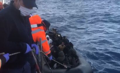 Sahil Güvenlik ekiplerince durdurulan hareketli lastik bottaki 41 düzensiz göçmen yakalandı.