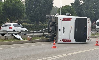 Kazada aracı kullananın H.B. (57) olduğu, midibüsün plakası henüz öğrenilemeyen bir araç olduğu bildirildi. Araç, Menderes Caddesi üzerinde refüje çarparak devrildi.