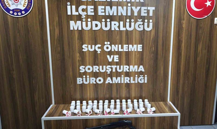 İzmir Gaziemir'de uyuşturucu operasyonu: 2 bin 550 sentetik ecza ve ruhsatsız tüfek ele geçirildi