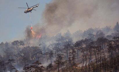 İzmir'in Foça ilçesindeki ormanlık alanda çıkan yangın, havadan ve karadan müdahaleyle söndürülmeye çalışılıyor. İhbar üzerine bölgeye İzmir Orman Bölge Müdürlüğüne ait 4 uçak, 6 helikopter, 25 arazöz, 7 su ikmal aracı ve 4 dozer sevk edildi.