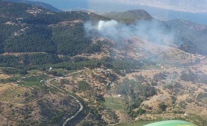 İzmir'in Karabağlar ilçesinde çıkan orman yangınına havadan ve karadan müdahale ediliyor.