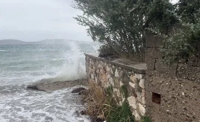 - Mordoğan sahilinde deniz dalgalarının yükselmesi, iskelede bağlı teknelerin batmasına neden oldu.