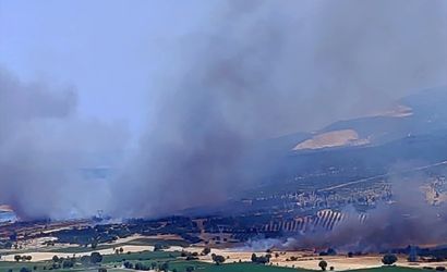 İzmir'in Kınık ilçesinde çıkan orman yangınına havadan ve karadan müdahale başlatıldı.