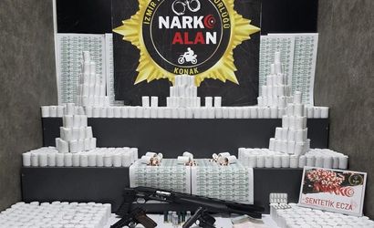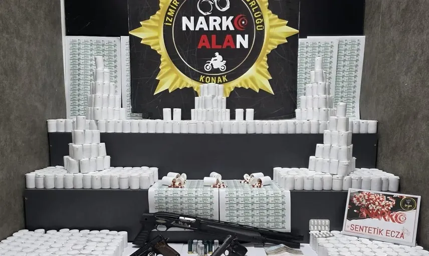 Konak’ta narko operasyonu: Çok sayıda sentetik ecza ve silah ele geçirildi