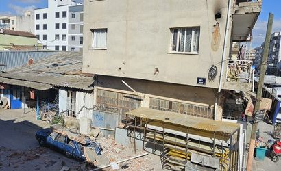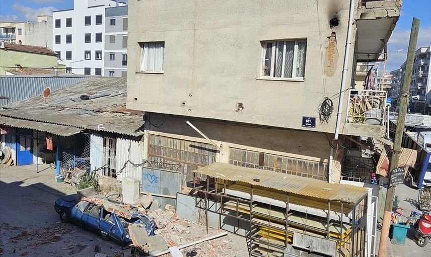 İzmir'in Menderes ilçesinde kuvvetli rüzgar nedeniyle apartmanın çatı katındaki duvarın yıkılması sonucu otomobilde hasar oluştu. Olayın ardından bina tahliye edilirken, polis çevrede güvenlik önlemi aldı.
