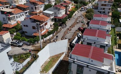 İzmir'in Menderes ilçesinde meydana gelen şiddetli sağanak nedeniyle bazı ev ve iş yerlerini su bastı, derenin taşması sonucu istinat duvarı yıkıldı ve yol çöktü.