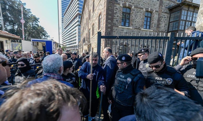 Mahkeme kararıyla mülkiyeti Vakıflar Genel Müdürlüğü’ne devredilen binada, polis tarafından giriş çıkışlar kapatılarak tespit çalışmaları başlatıldı. Tahliye öncesinde belediye yetkililerine resmi bir tebligat yapılmadığı iddia edildi; bunun üzerine İzmir Büyükşehir Belediyesi hukukçuları uygulamaya itirazda bulundu.