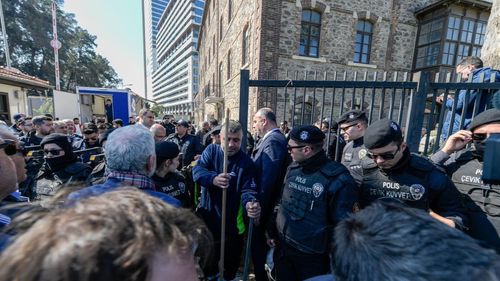 Meslek Fabrikası'nın tahliyesi sırasında çıkan gerginlikte bariyerler yıkıldı; polis müdahalesiyle kontrol sağlandı. Belediye ile Vakıflar arasında mülkiyet ihtilafı sürüyor.