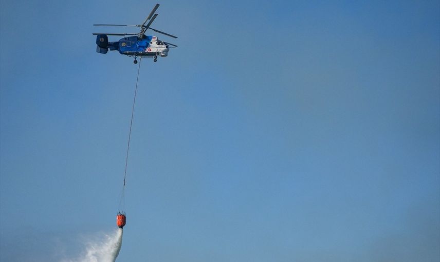 Çalışmalar, İzmir Orman Bölge Müdürlüğü'ne ait 2 uçak, 9 helikopter, 35 arazöz, 9 su ikmal aracı ve 4 dozer ile yürütülmektedir.