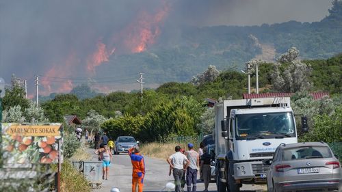 İzmir'in Seferihisar ilçesinde makilik alanda çıkan yangına havadan ve karadan müdahale ediliyor.