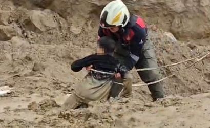 Kurtarma sırasında ekipler, çamurun her adımda daha da içine çekme riski bulunan zeminde kontrollü hareket ederek çocukları tek tek bulunduğu yerden çıkardı ve güvenli alana taşıdı.