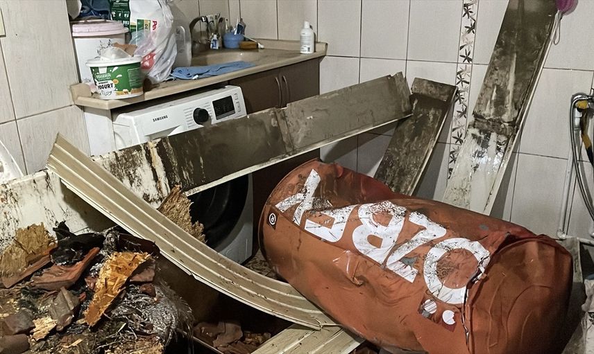 Çeştepe Mahallesi'nde ise bir binanın çatısından düşen güneş enerjisi su tankı, yan taraftaki binanın çatısına isabet etti ve çatıdan evin banyosuna girdi. Ayrıca, Zeybek Mahallesi 1529 Sokak'ta park halindeki bir araca da bir ayrı apartmanın çatı katındaki su tankı düştü. Olayı duyan aracın sahibi, büyük bir gürültü sonrası dışarı çıktığında bu görüntüyle karşılaştı.