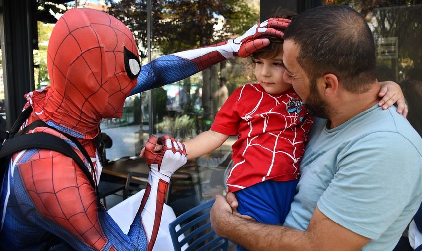 İzmir'den yola çıkan Salih Ayaz Koç, "Örümcek Adam" kostümü ile Türkiye genelinde çocukları ziyaret ediyor. 49. durağı olan Bilecik’te hem tarihi yerleri gezdi hem de çocuklarla güzel anlar yaşadı.