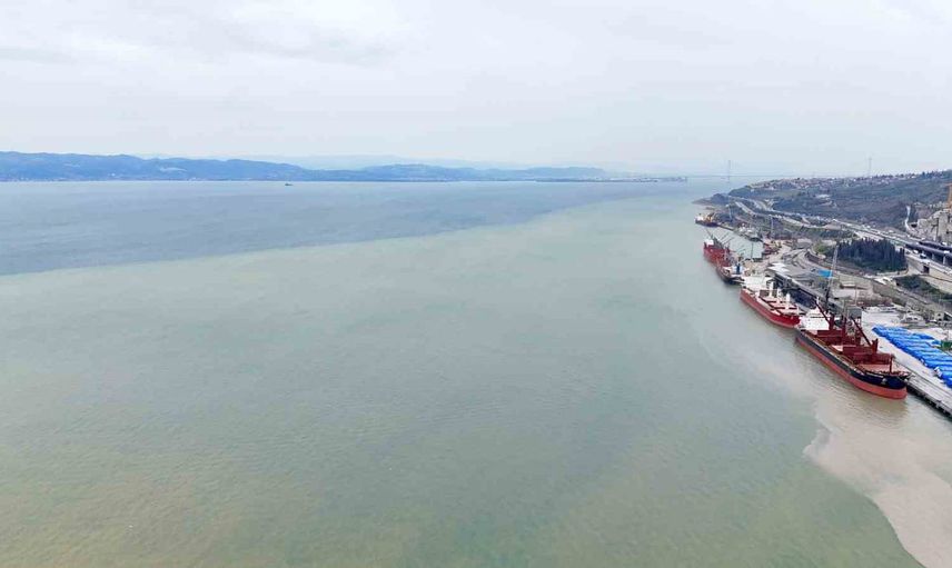 İzmit Körfezi’nde yağış sonrası iki renk: Hereke deresi denizi kahverengiye boyadı