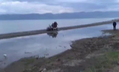 BURSA’NIN İZNİK İLÇESİNE BAĞLI BOYALICA MAHALLESİ SAHİLİNDE ATV MOTOSİKLETİYLE GEZİNTİYE ÇIKAN MESUT UZUN, YAĞIŞLARIN ARDINDAN BALÇIĞA DÖNÜŞEN KUMA SAPLANDI.